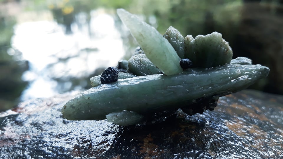 Serifos green quartz or prase/prasem (also known as hedenbergite ) has become extremely rare since mass mining of sea caves in Serifos, Greece ceased in 1965. The poplualtion at this time rose from 1500 to over 4000 approx. at the height of the mining era. The main focus of mining was not the quartz but Ore, of which many hundred's of thousands of tons were exported to the Europe. Prior to this, mining for this precious Ore had been going on since the 6th Century BC through the times of Roman rule to 16th Century, then stopped for over 200 years until in 1861 King Otto's decree ordered mining to commence once more.